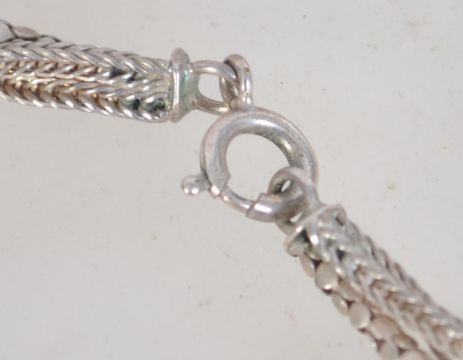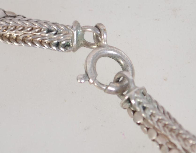 A 925 silver designer rope weave popcorn chain necklace. Marked 925. Weight 20.2g. Measures 20 inches.