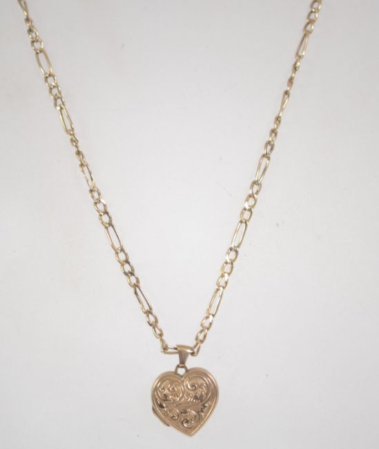 A hallmarked 9ct gold Figaro chain linked necklace with heart locket pendant inscribed ' Love You Always ' Total weight 4.5g / Chain length 46cms. Hallmarked Birmingham.