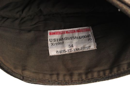 A post WWII Second World War 1967 German made Forage uniform cap. Makers details for Bamberger Mutzen Industrie. POSTAGE: Worldwide postage / delivery available on all items. Combined postage available; UK £15.99+VAT, Ireland from £19.99+VAT, Europe from £19.99+VAT, USA / Canada from £30+VAT. Any other destinations please get in touch for a quote; info@eastbristol.co.uk. All quotes dependant upon location. Prices are per parcel (not per item).