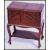A good mid century oak sewing box with articulated action having ebonised bracket work. All raised on shaped supports with handle atop. Measures 65cm high x 32cm wide x 50cm deep.