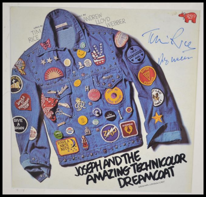 A Willy Russell & Barbara Dickson signed Blood Brothers Album together with a Tony Bennett signed and mounted Album cover together with Tim Rice and Andrew Lloyd Webber autographs. Andrew Lloyd Webber and Sir Tim Rice signed and mounted Joseph and his amazing Technicolor dream coat album cover