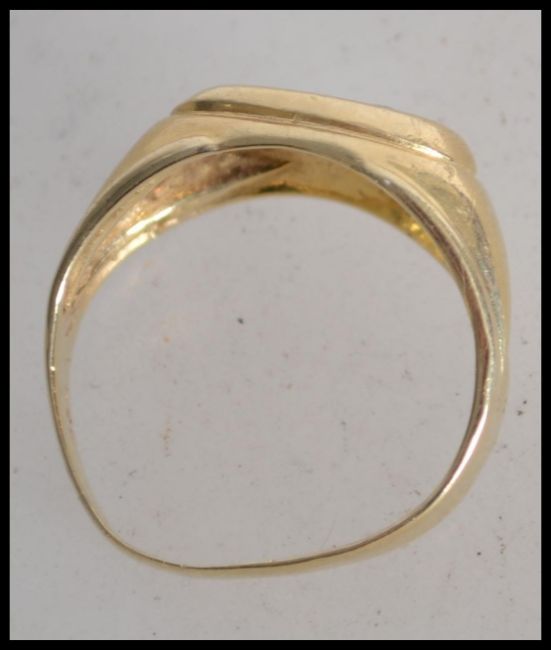 A 14ct gold signet ring set with a single clear stone. Marked 585, tests 14ct gold. Size R. Weight 5.8g.
