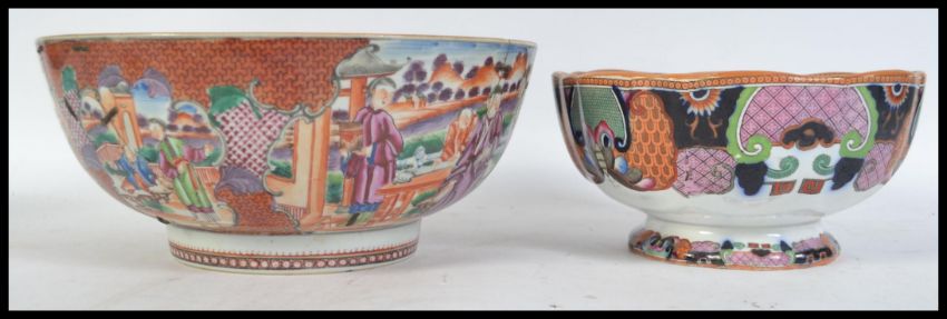 Withdrawn Duplicate LotA Chinese Imari pattern bowl circa 19th century together with another Staffordshire bowl with Chinese influence ( see illustrations )