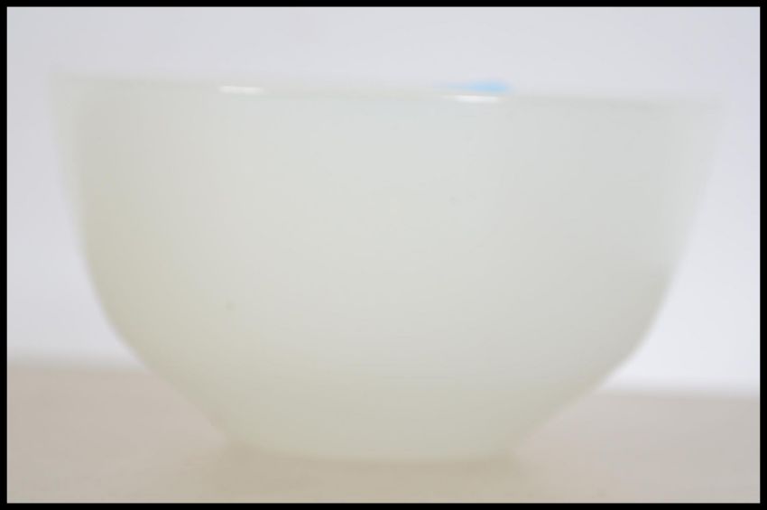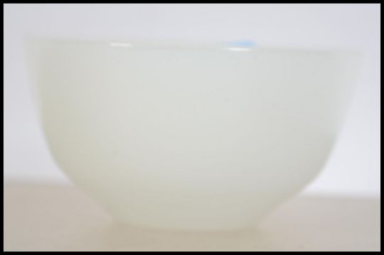 An unusual Chinese 20th century white - mutton fat style jade carved bowl. Of translucent form.  Measures: 8cms wide.