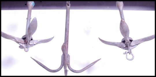 A group of three stunning  vintage /  retro folding three point boat anchors. Measures 47cm high x 34cm wide x 34cm deep.
