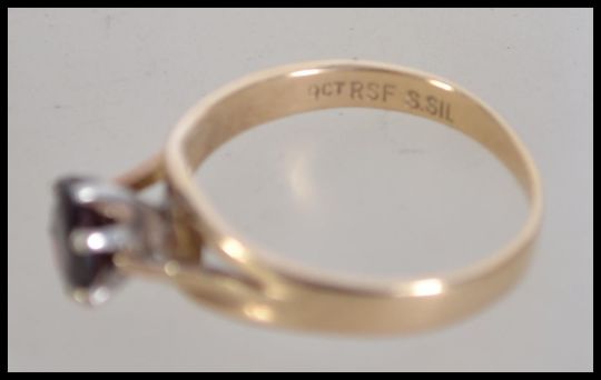 An Art Deco 9ct gold and silver ring set with a red stone  Marked 9ct and Sil. Tests 9ct and silver. Size Q.