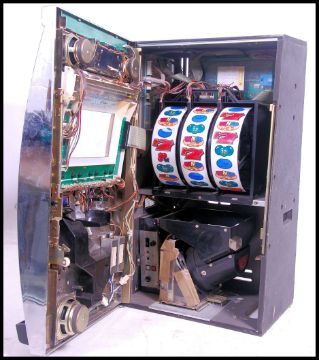 A 20th century ' Bingo ' fruit machine. Table top height sized machine complete with tokens etc having power lead ( see illustrations ).