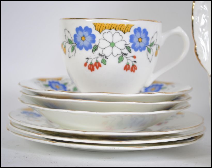 A 1930's Art Deco Staffordshire tea service in a good chintz pattern comprising cups, saucers, plates, sugar bowl and crea,er set
