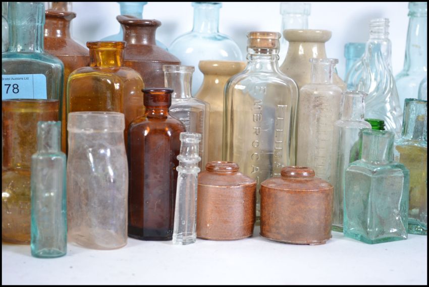 A collection of 19th and 20th century bottles to include Hamilton bottle, cod bottles advertising bottles etc please see images. Measures 21cm high.