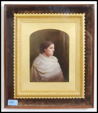 An exceptional late 19th Century oval Berlin   portrait study on ceramic plaque. The beautiful painting of a maiden being unsigned set within an ornate gilt frame that has been re-framed and glazed for protection