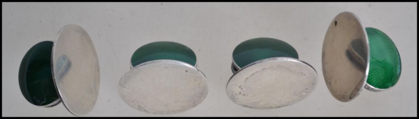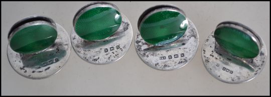 A set of four silver and enamel hallmarked place setting name holders, Birmingham assay mark, letter K