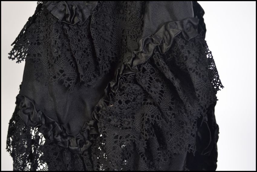 A collection of Victorian / Edwardian mourning clothes to include bonnets, skirts etc