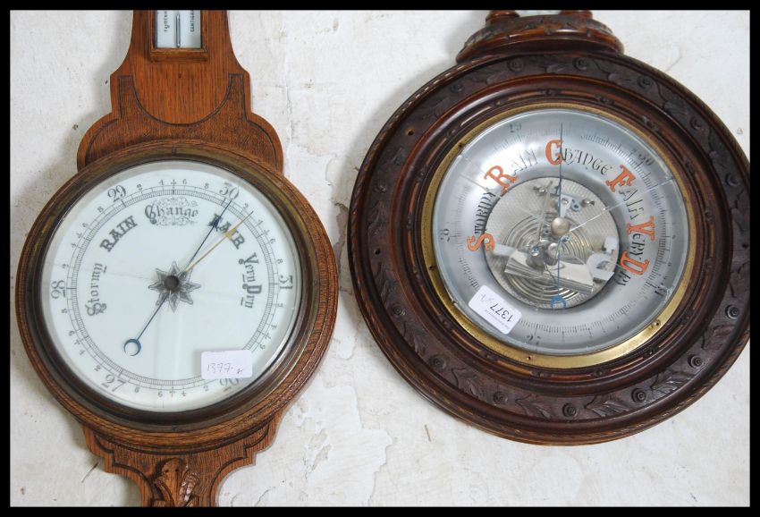 Two 20th century oak banjo barometers both A/F. With carved decoration