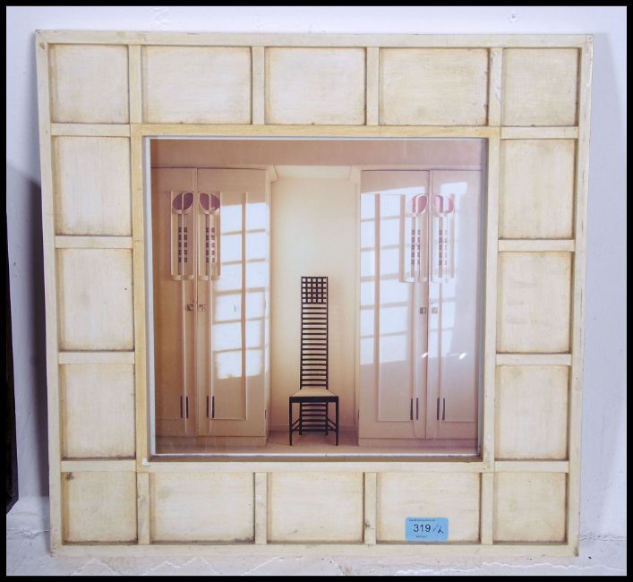 A framed and glazed Renee Macintosh picture together with a framed and glazed believed piece of  William Morris fabric. Measures 38cm high x 100cm wide.