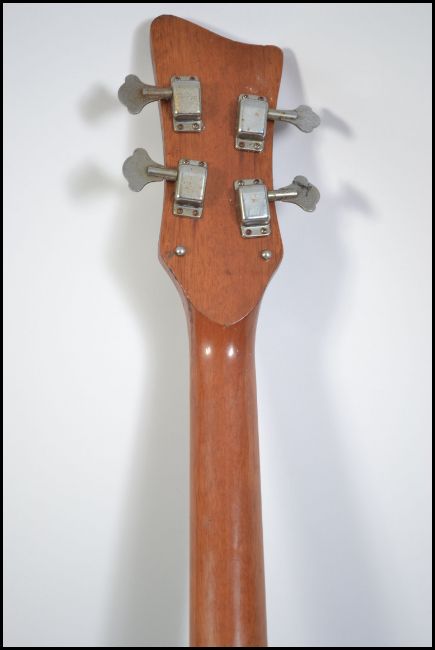 A 1960's Zenta Japanese bass guitar black ground with sunburst body.