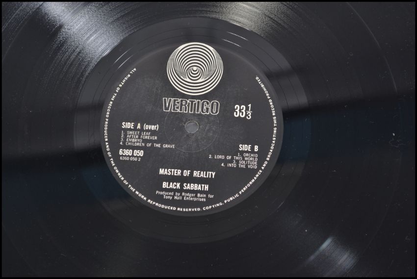 Black Sabbath Masters Of Reality long play LP vinyl album 1st press 1971 Vertigo UK lp with poster. Original 1st press matrix stampersSide A 6360050 1Y//1 Side 2 6360050//1. Box VG vinyl and poster N/M