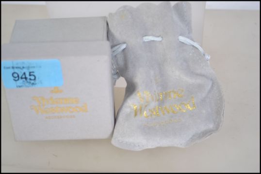A Vivienne Westwood white metal charm necklace bracelet of link form with owl pendant ' Woo me ' set with a lobster claw clasp. Complete in pouch and presentation box.