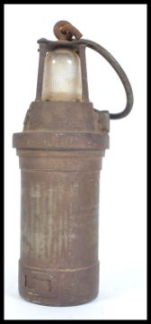 An early 20th Century NIFE miner's lamp, type N-26. With notation on applied plaque ' Nife Batteries Reddich Eng Nife Type 26 Approved Under Lighting Schedule. Measures 33cms high.