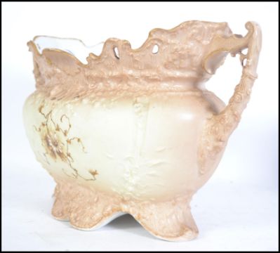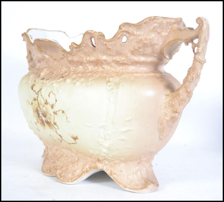 A late 19th century  Austrian Turn Wein ivory blush decorated oval planter centre piece ( centrepiece ). Decorated with gilt floral sprays, stamped to base. Measures 37cm across.