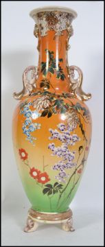 A tall early 20th century Japanese floor vase together with a stunning Japanese secessionist style vase finished in vivid bright colours. Measures 56cm high.