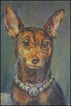 A decorative oil on canvas painting - portrait study of a dog by Simon Mohnery ( signed to the corner )