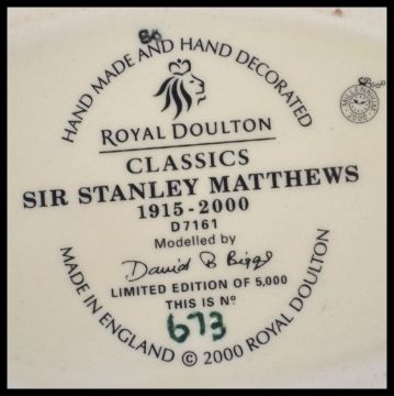 A Royal Doulton limited edition ' Stanley Matthews ' Toby Jug D7161 No 673 together with a Royal Doulton ' Bobby 'Toby Jug. Tallest measures 13cms high.