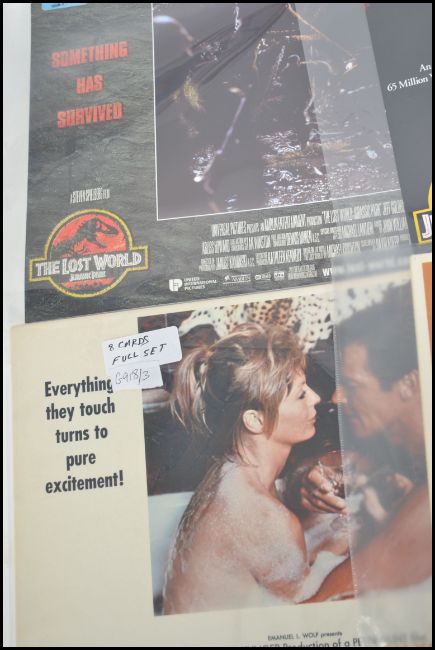 A good collection of film lobby advertising cards to include Jurassic Park, Little Big Man, Th Glenn Miller Show, John Wayne McQ and Roger Moore Gold. Most are full 8 card sets.