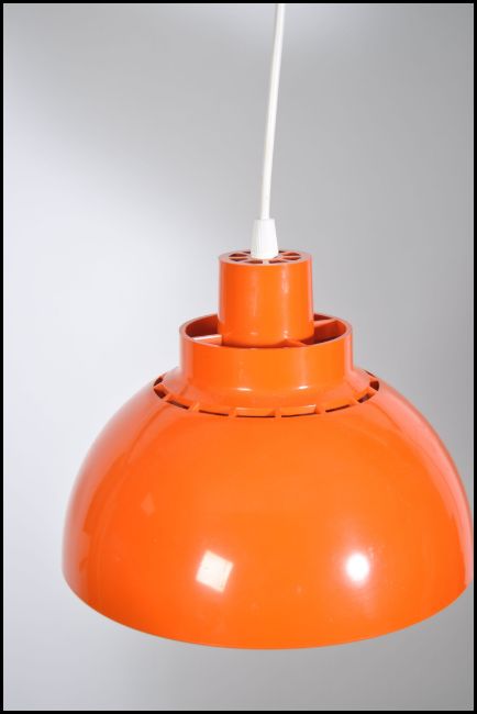 A 1970's retro original orange Minisol light by Svend Middelboe for Nording Solar together with another similar orange hanging ceiling with glass globe shade. Measures 22cms high.