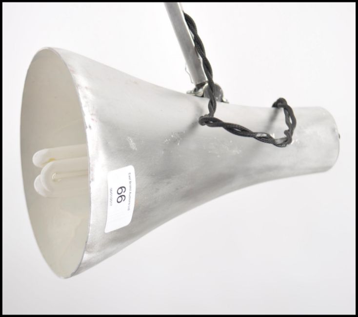 A polished metal post war - 1950's stripped Herbert Terry anglepoise desk lamp raised on a terraced base with pendant shade