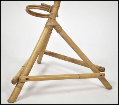 A rare mid century wicker ' snake ' plant stand. The shaped wicker frame in the form of a coiled snake with head atop over arched plant pot stands. Measures 134cms high x 46cms wide x 46cms deep.