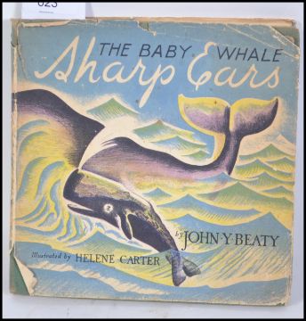 John Y Beaty; Sharp Ears, The Baby Whale. Illustrated by H. Carter. First Edition. Pub by Basil Blackwell, Oxford. Green cloth hardcover with orange titles and blue illustration. Original dust cover. Rare.