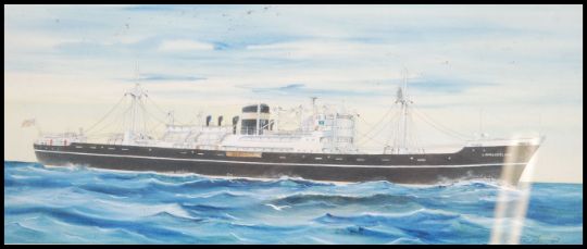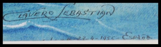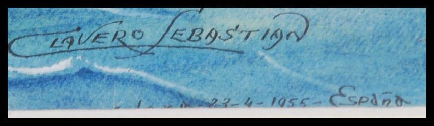Clavero Sebastian - Barcelona 23 / 4 / 1955 Espana. Goache on paper painting - shipping line - agents painting of the liner L Angleeclyde. Framed and glazed. Measures: 24cms high x 56cms wide.