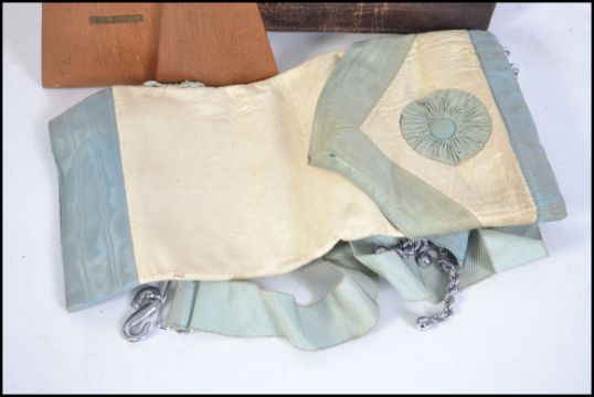 A Masonic leather satchel marked for Brother Burton Southwell Lodge NO 1405 together with a mid century metronome marked for Seth Thomas