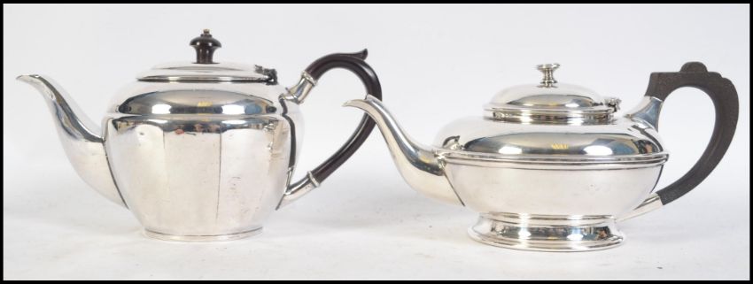 Two early 20th century Art Deco silver plated teapots both with bakelite handles and marked to the bases. 12cms high