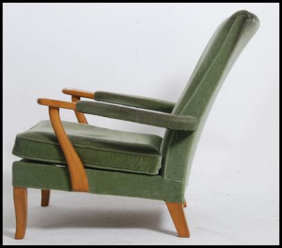 A 20th century vintage Parker Knoll open framed armchair having a spring base with original fabric finish.