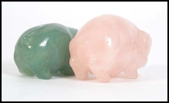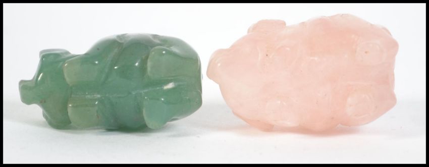 A 20th century well carved Jade pig along with a 20th century pink quartz carved sow. Both of small proportions. Measures 4cms long.