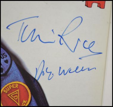 Tim Rice and Andrew Lloyd Webber autographs. Andrew Lloyd Webber and Sir Tim Rice signed and mounted Joseph and his amazing technicolour dream coat album cover