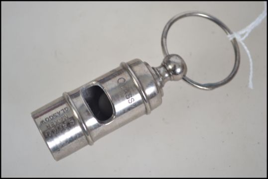 An unusual brushed steel whistle being marked for S. Auld Maker Glasgow White Star Line - Olympic Class