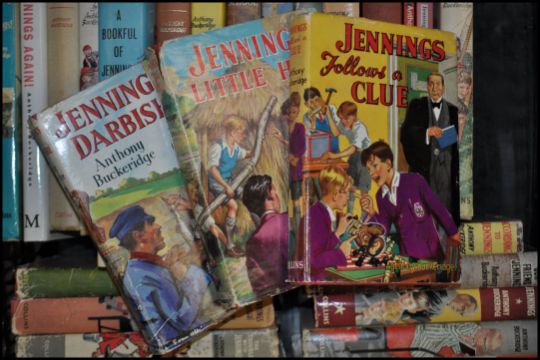 BUCKERIDGE (Anthony) A collection of Twelve Jennings novels in dust jackets, including first editions of - According to Jennings 1959, Our Friend Jennings 1961, Thanks to Jennings 1961, Take Jennings for Instance 1965, Jennings As Usual 1960, The Trouble with Jennings 1960, Jennings of Course! 1964, Especially Jennings 1966, Jennings Abounding 1967, Jennings In Particular 1969, Jennings And Darbishere 1967, Jennings Little Hut 1964, Jennings Follows A Clue 1965. Non 1st Jennings Goes to School 1956, Jennings Diary 1956, Leave it to Jennings 1956, Just Like Jennings 1962. Together with a collection of later Jennings books hardback and softback by Anthony Buckeridge.