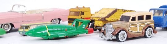 A collection of loose diecast to include; a Tonka skip, Solido Cadillac, Matchbox lorry etc.