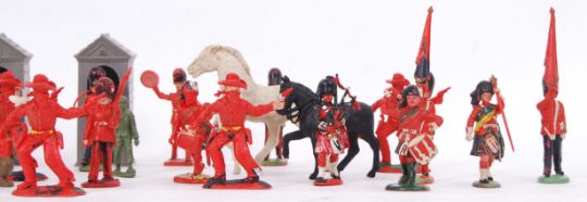 A large collection of Britains & Lone Star plastic figures to include; Cowboys, Queens Guards, Beefeaters, animals, Native American Indians etc. All loose.