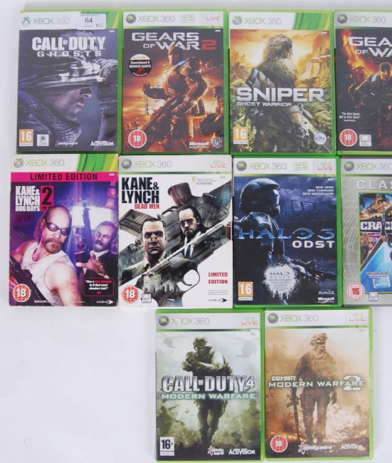 A collection 12x original Xbox 360 games to include; Call of Duty Ghosts, Kane & Lynch; Dead Men, Halo 4, Gears of War etc. All within original cases.