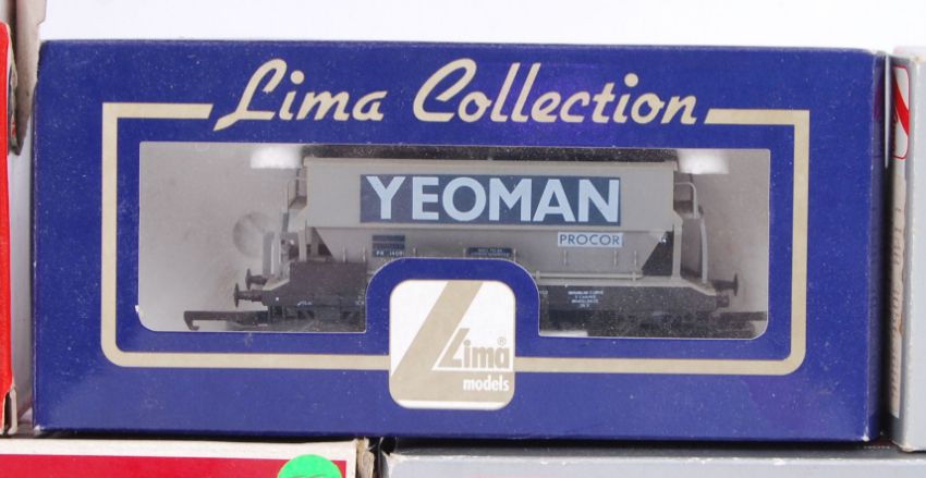 A collection of 7x original Lima model locomotives & rail carriages. To include; 305635A7 50 Ton Beaman, 5342W Car, 305322 Car, 305356 Car etc. All with original boxes. 00 gauge.