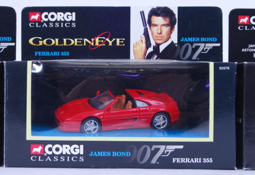 A collection of 3x original diecast Corgi James Bond vehicles. Vehicles include; 04302 Aston Martin DB5, 92978 Ferrari 355 & 04301 Aston Martin DB5. All within their original boxes.