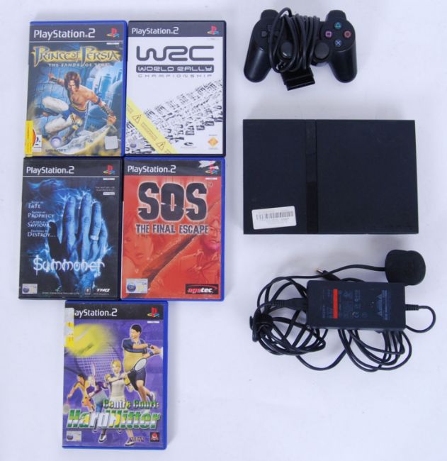 An original Sony Playstation 2 (unboxed) with controller and power cables. Also includes 5x game to include Prince of Persia, World Rally Racing etc.