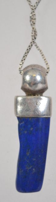 A silver 925 box link necklace chain with spring hoop clasp and a silver and lapis lazuli drop pendant. Chain measures 17 inches total weight 5.8 grams.