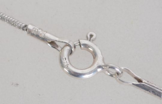 A silver 925 fine linked necklace chain with Murano style art glass drop pendant. Chain size 40cms / weight 13.6g