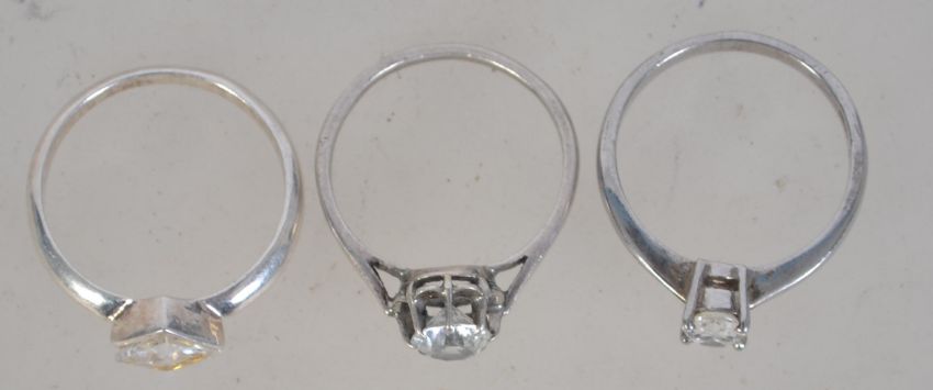 A group of three silver rings each with large CZ stones. Total weight 7.6 grams.