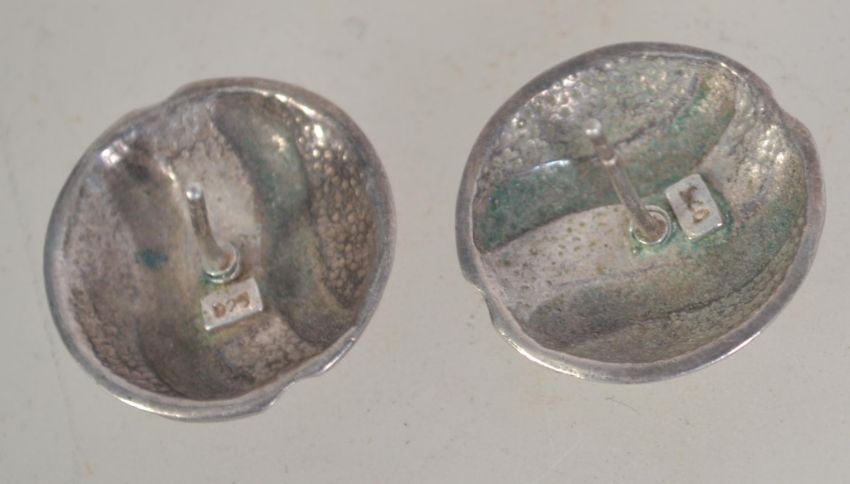 A pair of silver 925 large post backed earrings of geometric wave design. Weighs 7.1 grams measures 1 inches.