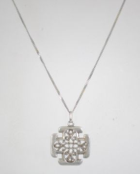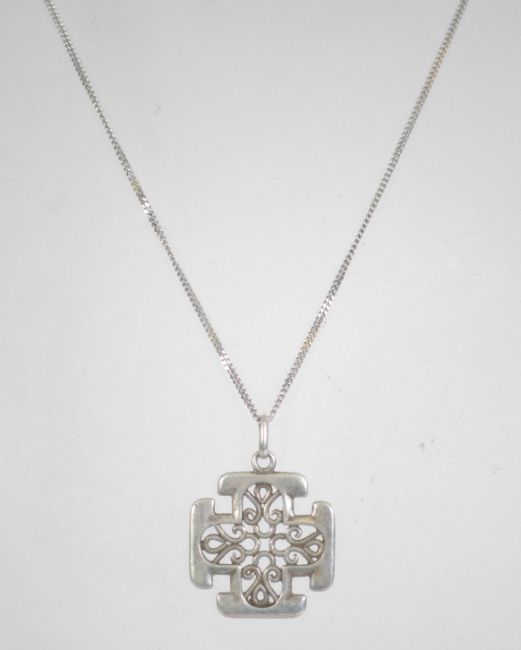 A silver 925 curb link necklace chain with Celtic cross pendant. Chain measures 16 inches weighs 4.9 grams